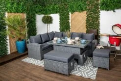 Two Seater Acacia Hardwood Garden Bench & Folding Side Table Set