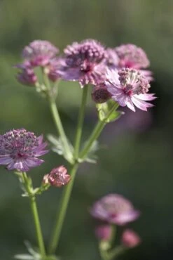 Unusually coloured pale-pink hooded flowers are densely packed onto the spikes which peak this upright perennial. The beautifully thick and glossy dark-green leaves are deeply lobed into gracefully downward-curling feather-shaped sections.