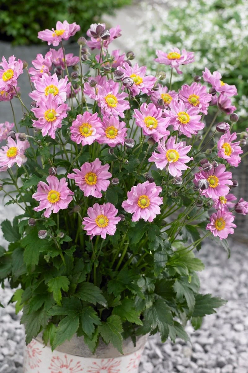 Japanese Anemones are easy to grow, trouble free plants – Pocahontas is a compact, well-behaved beauty, slug and snail resistant, nor fussy on soil conditions, it will thrive planted in full sun or partial shade. Forming a nice clump that increases and improves year on year, the masses of pink flowers are shown off beautifully above the fresh green foliage. After the flowers fade, fluffy seed heads are produced, standing a top strong stems to give interest to the garden from late autumn and into the winter.