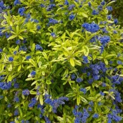 Ceanothus Lemon & Lime is an exciting new variety of evergreen California Lilac – an upright shrub with bright gold and green variegated foliage – hence the name Lemon & Lime.