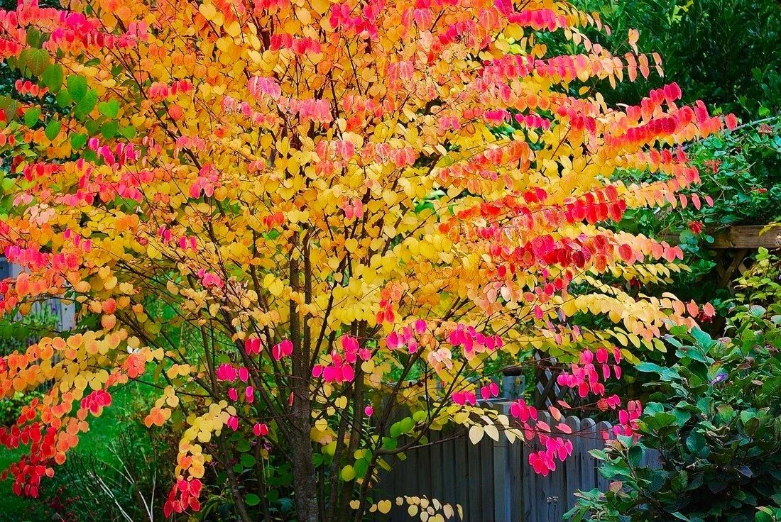 An attractive small tree or often grown as a large shrub with heart-shaped leaves. Also known as the Toffee Apple Tree, Cercidiphyllum japonicum has very good autumn foliage colour in subtle hues of pale yellow and smoky pink, the leaves are sweetly pungent and smell of burnt sugar when crushed – hence the other alternative name!