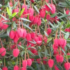 A beautiful, ornamental, evergreen shrub or small tree named after the lantern-shaped, crimson to deep carmine-pink flowers, suspended from the undersides of its branches from May to August. This award-winning lantern tree is perfect for a partially shady woodland garden with humus-rich acid soil. Initially slow-growing, in cold areas it’s best grown in a cool greenhouse or conservatory to minimise the risk of frost damage to the young flower buds.