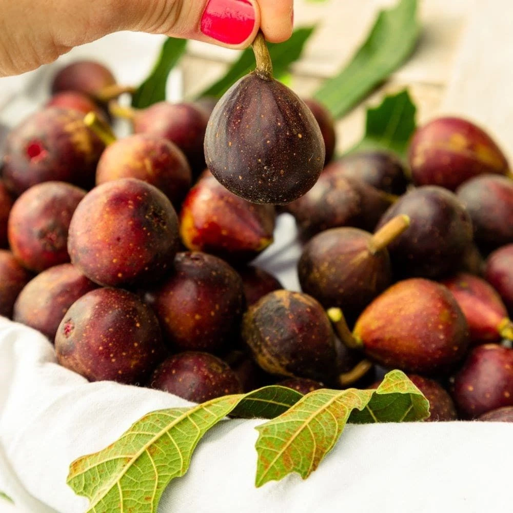 This dwarf mutation of the traditional variety ‘Violette de Bordeaux’ makes it easy to grow your own Figs in even the smallest of gardens! Fig ‘Little Miss Figgy’ has a neat compact habit, reaching just 1.8m tall. The large leaves are deeply lobed, making an attractive ornamental feature for a sheltered border or large patio pot.