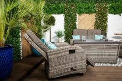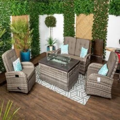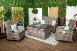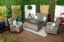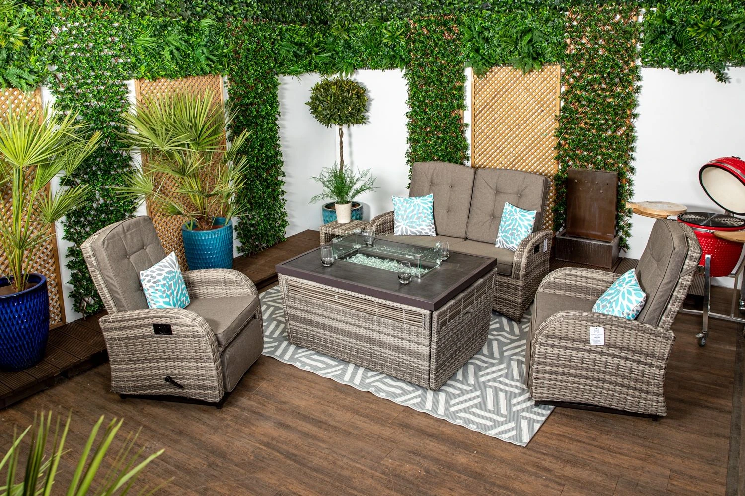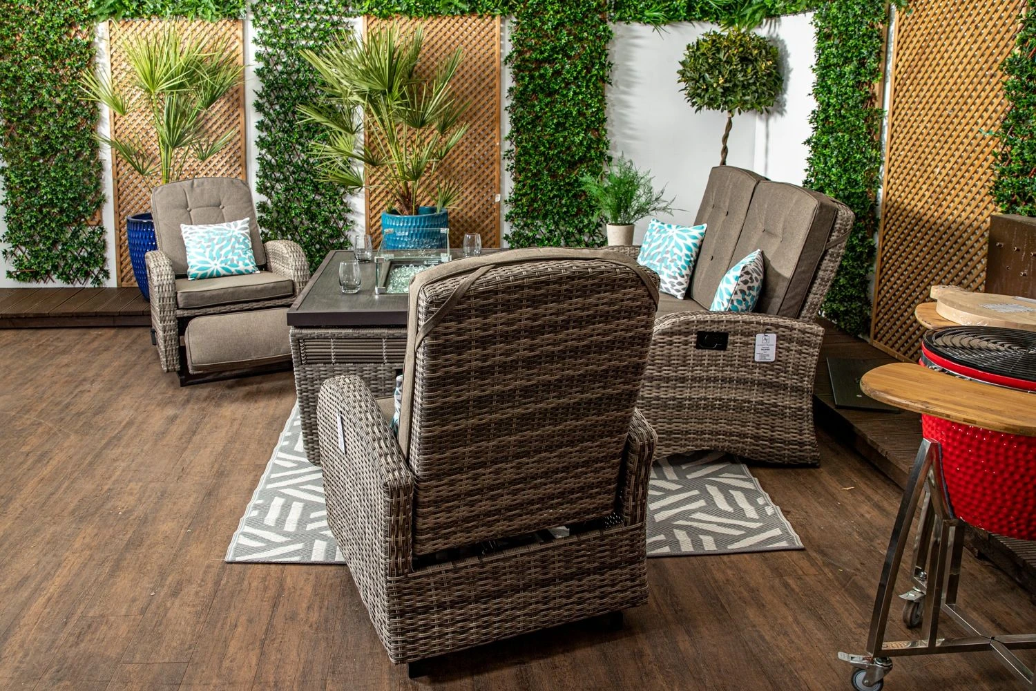 Relax and recline with our Felsted Recliner Sofa Set with Firetable. This sophisticated set will bring charm and warmth to any garden, making for a truly unique outdoor dining experience.