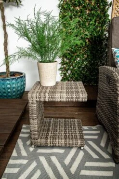 Another winning feature is the reclining rocking chairs that accompany the reclining two-seater sofa, allowing comfortable seating for up to four guests. Set with thick cushions and decorated with four, comfy scatter cushions, you are sure to unwind in complete serenity. We have also included a stylish side table so that you may have your drinks and snacks within easy reach, this entire piece has been designed with relaxation in mind.