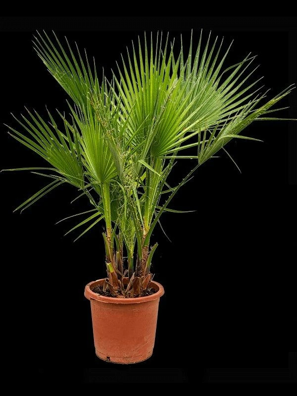 Over time Washingtonia palms will form a tall, slender trunk topped with massive fan-shaped leaves. It will do best in a bright sunny warm position in free draining soil.