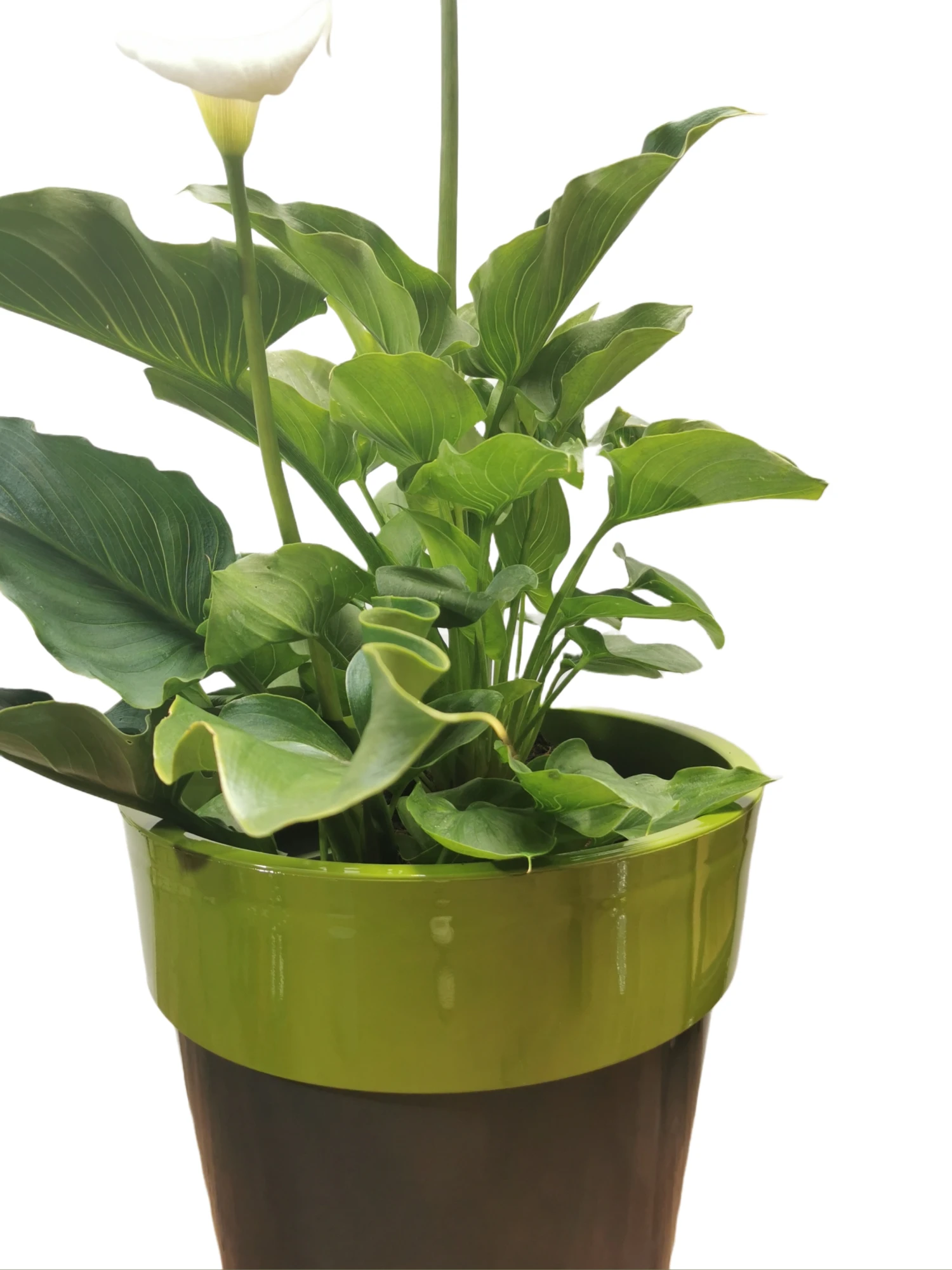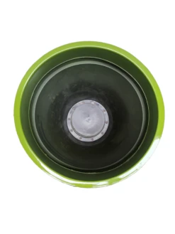 This stunning glossy apple planter features a two-toned design that is sure to catch the eye. The vibrant green that wraps around the edge will contrast beautifully with whatever you choose to plant inside.