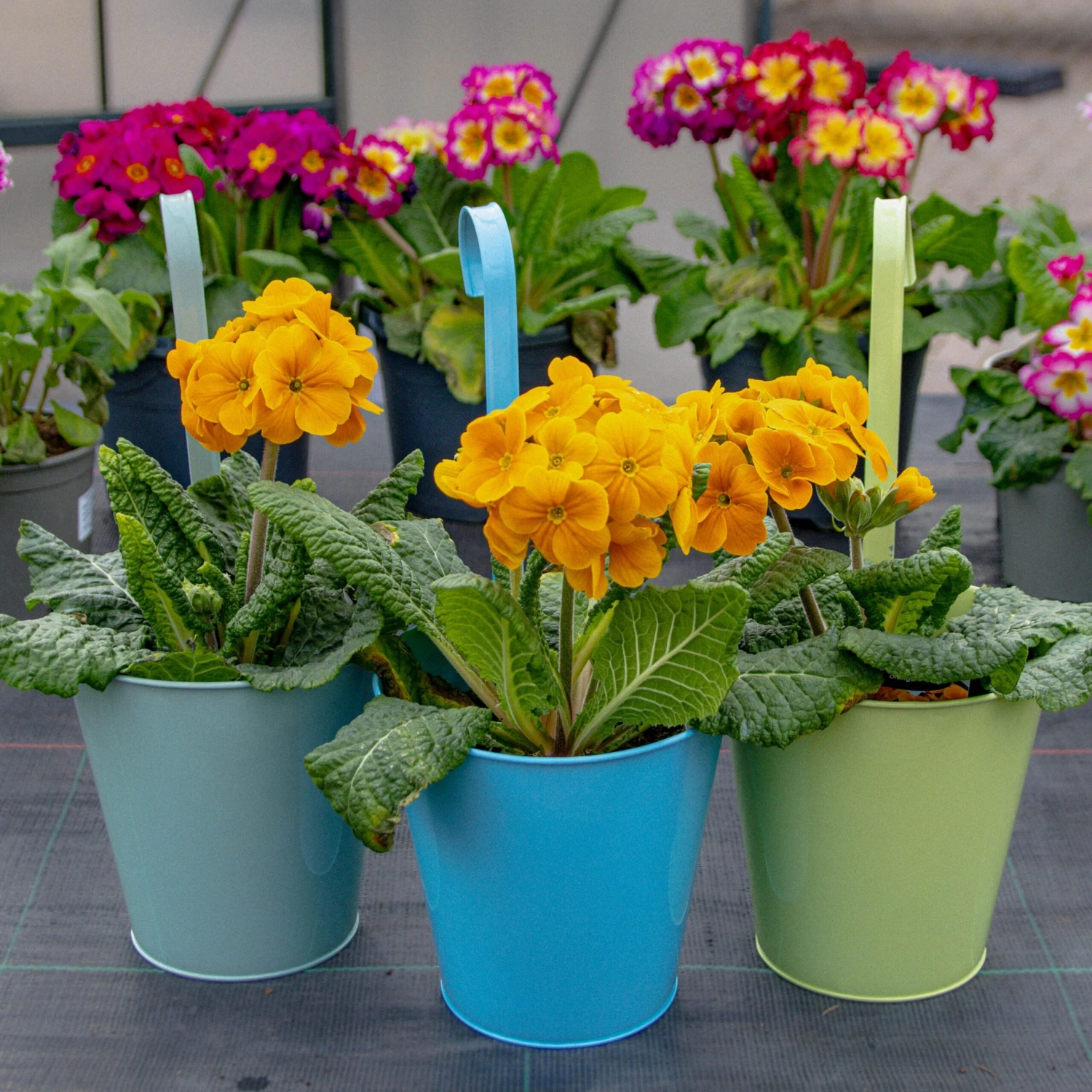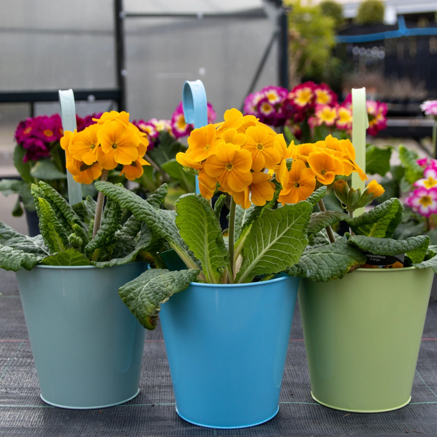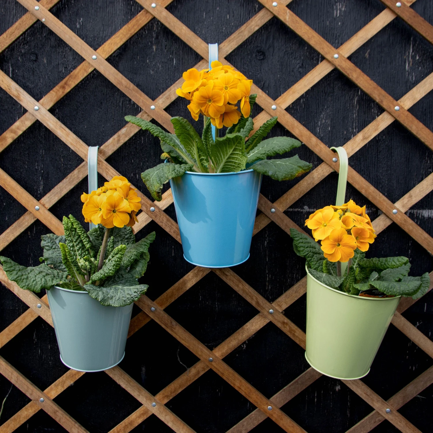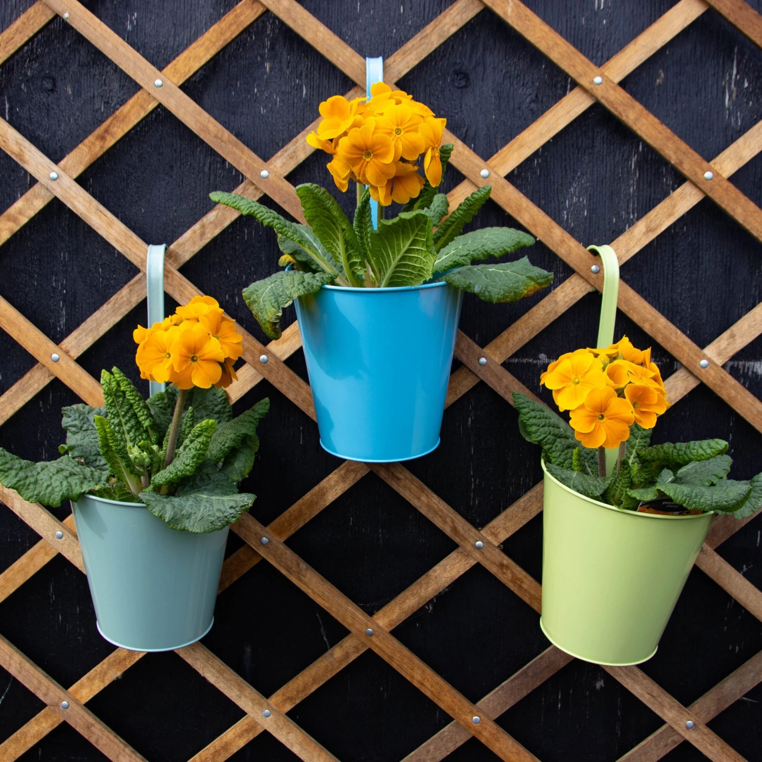 Pack of Three – Shades of Green & Blue Metal Hanging Pots