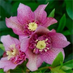 Flowers are a medium pink in colour and are speckled with burgundy or purple. They have a gorgeous, centre with prominent yellow stamens. Coupled with the leathery, evergreen foliage, this Helleborus is a true delight and a real must-have for your garden. Prune leaves down to the ground in late Winter to really show off the flowers when they come into bloom. The ruffled and pleated blooms really are reminiscent of a ballerinas tutu – hence the name.