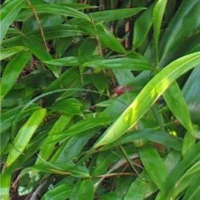 This small bamboo has enormous, dark green leaves on slender, needle-like canes. The oversized leaves bend the narrow canes creating a leafy mound. It is a small species that does not spread excessively making it ideal groundcover for an exotic garden. Supplied in approx 2-3 Litre containers.