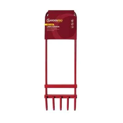 Pro Gold 5 prong lawn aerator with foot bar. Allows oxygen to the roots and the soil to breathe. Packed with a full colour card wrap