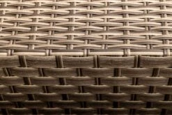 The four seater sofa is made from a larger 20mm PE rattan and is supplied with matching light grey fire-retardent cushions.