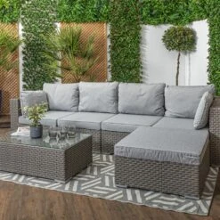 Seating 5 or 6, this simple sturdy sofa set is built upon a strong aluminium frame.