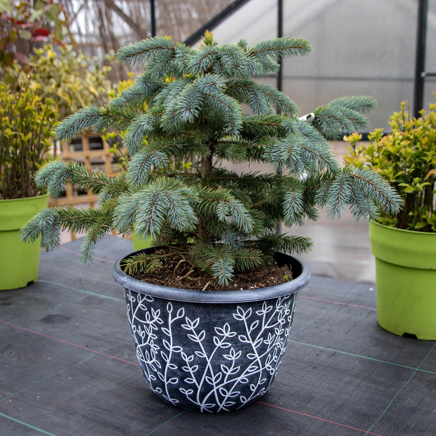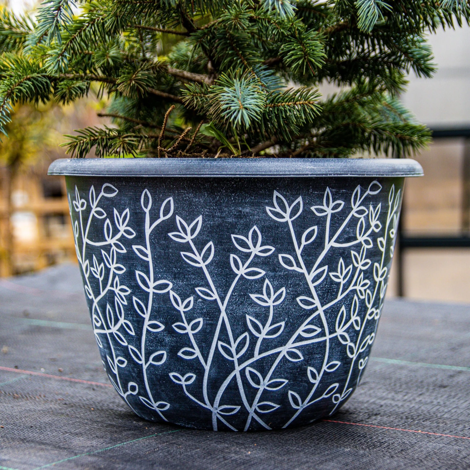 The 30cm Serenity Planter has a distinctive and colourful etched floral pattern design. Each planter is frost proof and manufactured from recycled plastics and is supplied with pre-drilled drainage holes. Each planter has a distinctive hand-painted white wash that highlights the exterior design, it is both simple and striking.