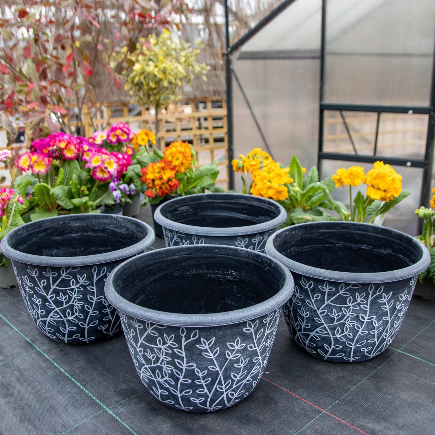 Pack Of Four – Large Black & White Serenity Planters (30cm)