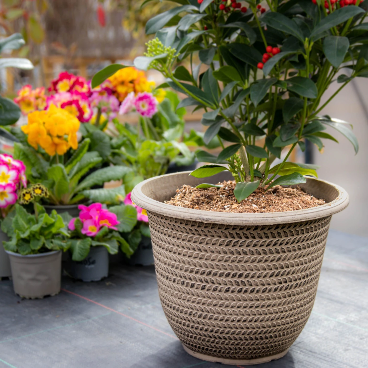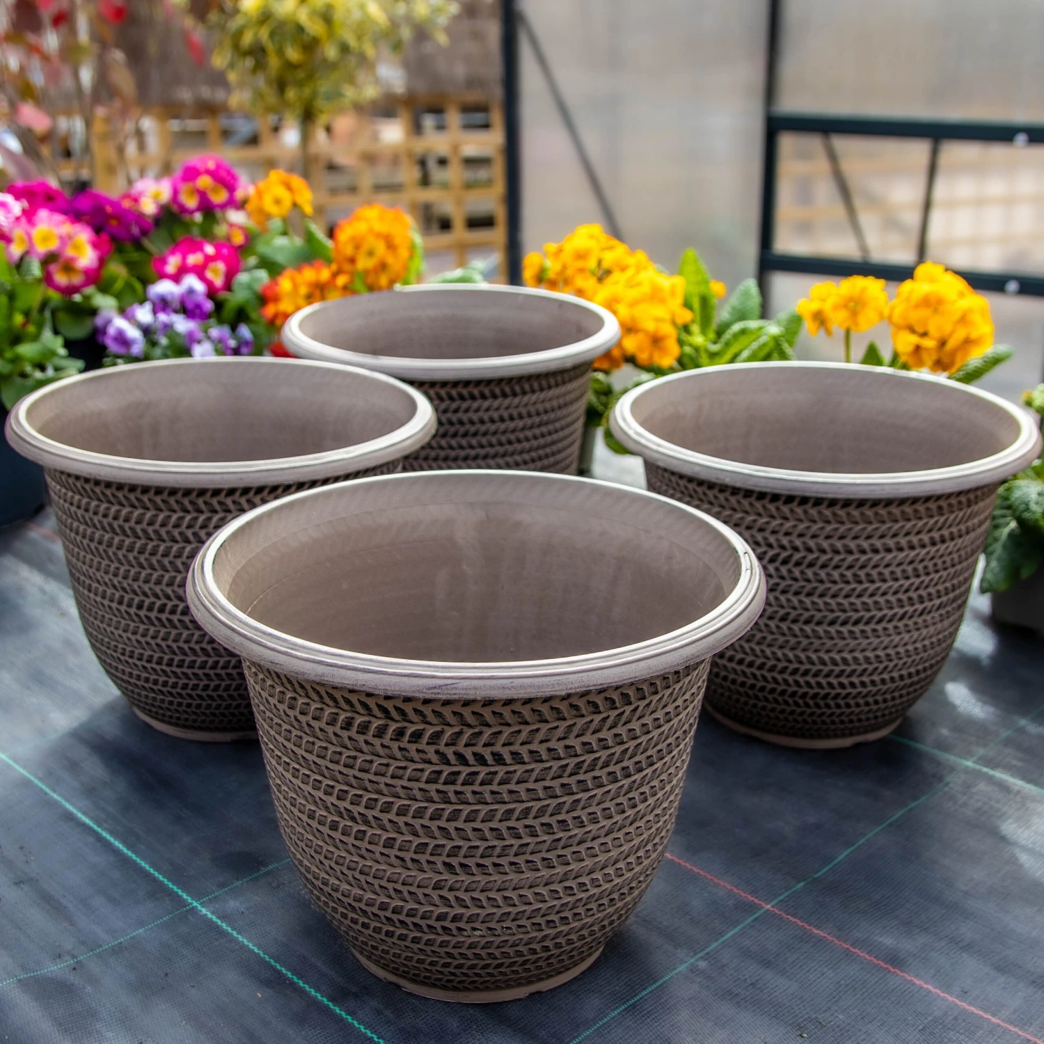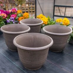 Elevate every floral display with the help of these beautiful taupe planters. Each 30cm planter provides plenty of space for your plants to thrive, and they are guaranteed to look great both indoors and out. Crafted from durable plastic resin, they have a nice textured pattern and will be a staple in your garden for many seasons to come.