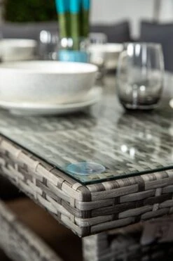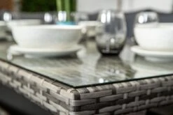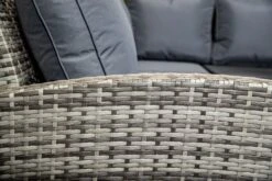 Bringing indoor comfort to the outdoors, the piece is woven around a galvanised steel frame with high-quality, premium rattan, creating its strong structure. Furnished with our thick, machine washable, grey cushions, it makes for a comfortable and relaxed dining experience. Whilst we don’t recommend that the cushions are left out during a heavy downpour, they are made to withstand rain showers, so don’t panic if the weather takes a turn for the worse!