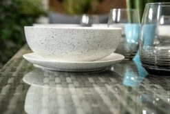Paired beautifully with the elegant dining table -set with 5mm tempered glass- it is the ideal option to enjoy parties, barbecues and lunches in the warm summer months.