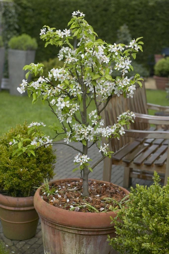 This patio fruit tree is grafted on a special root stock to give a maximum mature height of approx 1.2-1.5 metres, is self pollinating, although if you have additional pear trees within a few miles, busy bees will further improve fruit set by cross pollinating with other tree. Supplied in an approx 5 litre containers.
