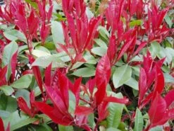 This popular evergreen shrub has brilliant red, glossy young foliage and clusters of small, white flowers in mid to late spring, sometimes followed by spherical red fruit. A compact and colourful variety it can also be used to make a fabulous informal hedge. It’s also great trained as a wall shrub against a south or west facing wall. Our Photinia x fraseri Red Robin is supplied as bushy plants in approx 5 Litre containers.