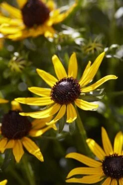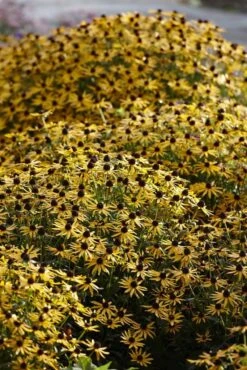 Flowering from summer to the first frosts, Little Goldstar Rudbeckia is perfect for mass planting as the front of the border or as part of a seasonal container display. It looks fabulous mixed with other seasonal favourites such as Sedums, Ajuga, Heucheras and Grasses too. There are so many choices with this plant.