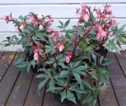 Nodding, beautiful cup shaped flowers appear as early as November, with the colour being especially pretty. The peachy pink buds open to good sized, bell-shaped flowers that mature to pink on the outside and creamy white on the inside and then fade to green. These remain on the plant for some time, often continuing through until May – that’s up to seven months of colour and interest for your winter and spring garden borders and containers.